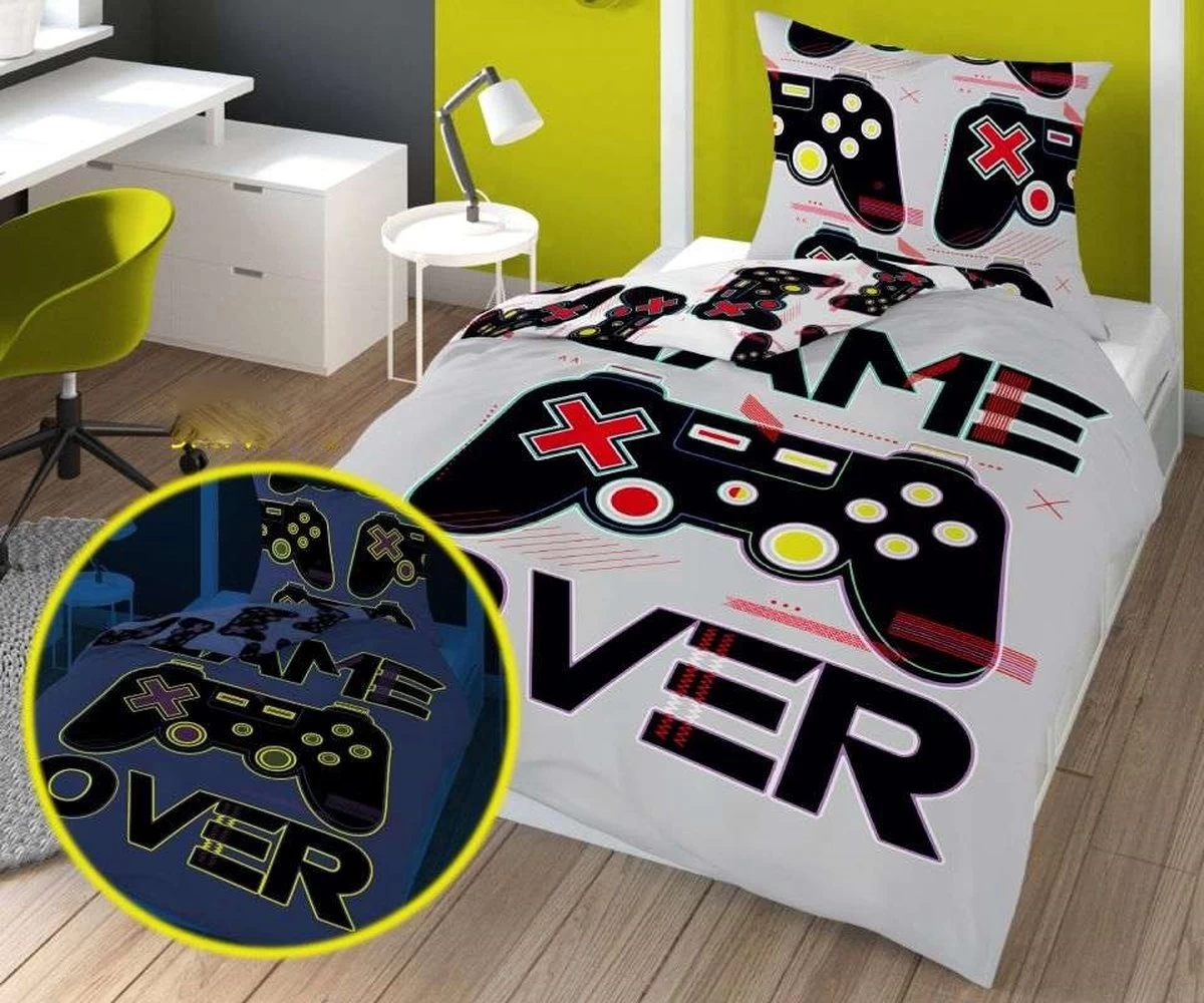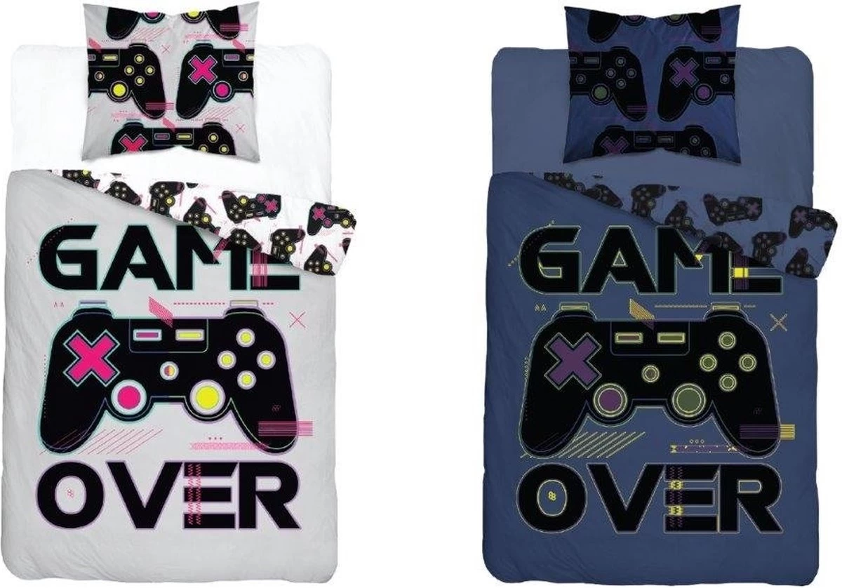 Dit is pas echt een super gaaf dekbedovertrek voor de jeugd! De basiskleur is wit met in het midden een grote controller van de Playstation. Ook staat er in grote letters “game over” bij. Het is echt een gaaf dekbedovertrek voor de echte gamers!! Op het kussensloop staan meerdere controllers afgebeeld, dit in combinatie met mooie frisse kleuren!