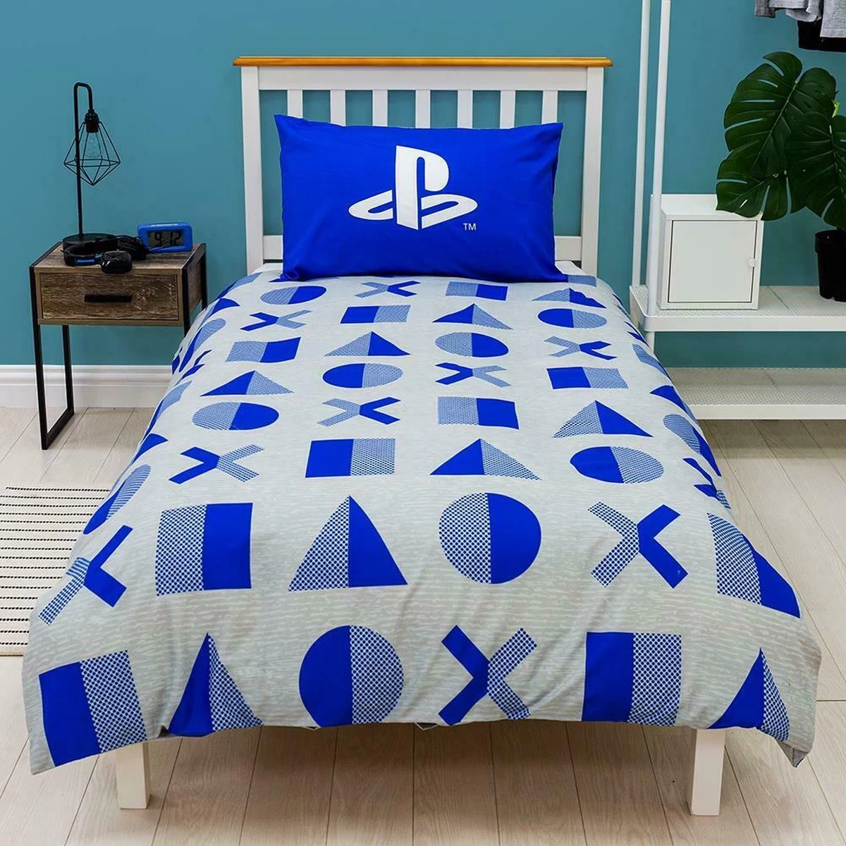 Super mooi en ook stoer dekbedovertrek met het echte loge van Playstation erop. Het dekbed is grijs van kleur met helder blauwe controller knopjes. De controller knopjes hebben een mooi stipjes patroon aan één zijde. Op het kussensloop staat het logo van Playstation. Dit overtrek is van het echte merk van Playstation en is erg uniek. Het is een ‘licensed’ product, en van zeer goede en bovenal zeer zachte kwaliteit!