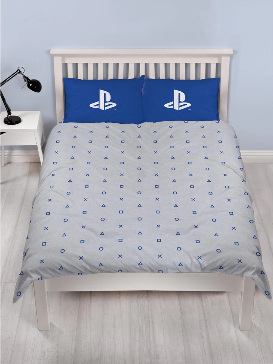 Super mooi en ook stoer dekbedovertrek met het echte loge van Playstation erop. Het dekbed is grijs van kleur met helder blauwe controller knopjes. Er zit nog een heel klein subtiel motiefje in het grijze gedeelte, dit maakt het dekbedovertrek extra bijzonder! De controller knopjes hebben een mooi stipjes patroon aan één zijde. Op het kussensloop staat het logo van Playstation. Dit overtrek is van het echte merk van Playstation en is erg uniek. Het is een ‘licensed’ product, en van zeer goede en zeer zachte kwaliteit!