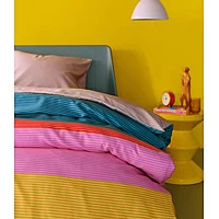 Dekbedovertrek – MultiDekbedovertrek Eye Candy zorgt voor een vrolijke start van de dag. De grote kleurvlakken opgevuld met strepen in geraffineerde kleurcombinaties zorgen ervoor dat je niet snel uitgekeken raakt op dit overtrek. De kleuren rood, roze, petrol, blauw, nude, oker, taupe, zand en bruin geven dit overtrek een fris en vrolijke uitstraling. De satijnweving zorgt voor een luxe uitstraling. De nude kleur op de achterkant van het overtrek en de kussenslopen maken het helemaal af. Beddinghouse Dutch Design participeert in het programma van Better Cotton Initiative (BCI), met als doel de katoenteelt wereldwijd te verbeteren.Het dekbedovertrek is gemaakt van 100% katoensatijn van hoge kwaliteit. Het dekbed heeft over de gehele breedte aan beide zijden een dubbele instopstrook. De kussenslopen van Beddinghouse Dutch Design worden uitgerust met een dubbele hotelsluiting.Eigenschappen* 100% biologisch katoensatijn, GOTS gecertificeerd* Dit product voldoet aan de strenge normen van het GOTS keurmerk (