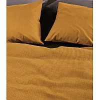 Dekbedovertrek – OkerDe bextextiel collectie van At Home by BeddingHouse geeft je slaapkamer een rijke, sfeervolle uitstraling met een geheel eigen karakter. Dekbedovertrek Relax heeft een verfijnde vierkante wafelstructuur aan de voorzijde van het overtrek en een effen, gladde achterzijde. De kussenslopen zijn effen en glad, zonder wafelstructuur. Dekbedovertrek Relax is verkrijgbaar in verschillende kleuren. Het dekbedovertrek is verpakt in een mooie stoffen tas voorzien van hengsel, gemaakt van hetzelfde materiaal als het overtrek. Deze tas is herbruikbaar. Het dekbedovertrek is gemaakt van 100% katoen, 144 TC. Het overtrek heeft over de gehele breedte aan beide zijden een dubbele instopstrook. De totale lengte van het dekbedovertrek is 250 cm. Dit is extra lang waardoor het dekbedovertrek gemakkelijk onder het matras gestopt kan worden en koude voeten worden voorkomen. Het overtrek is geschikt voor