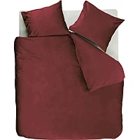 Beddinghouse Tender Donker Rood Katoen-140 x 200 / 220 cm | 1-Persoons. Dit prachtige dekbedovertrek is van het merk At Home by Beddinghouse en behoort tot de Tender serie. Het dekbedovertrek is vervaardigd van velvet aan de voorzijde en aan de achterzijde 100% katoen, dit materiaal heeft een hoge kwaliteit en blijft voor een lange periode mooi en goed. Katoen heeft van nature ademende eigenschappen wat voor een fris gevoel tijdens uw nachtrust zorgt. Het velvet zorgt voor een zachte en luxe uitstraling. Het dekbedovertrek wordt geleverd inclusief bijpassende kussenslopen van 60 x 70 cm. Het dekbedovertrek heeft een extra lange dubbele instopstrook, hierdoor is het dekbedovertrek geschikt voor alle lengte maten