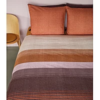 Dekbedovertrek – TerraDekbedovertrek Bruno heeft een moderne uitstraling. Het dessin is opgebouwd uit banen met een gewoven linnenstructuur. De warme tinten geven het dessin een stoere maar tegelijkertijd ook een warme en sfeervolle uitstraling. Beddinghouse wil mooie collecties ontwerpen waarbij er rekening wordt gehouden met mens en milieu. Daarom is Beddinghouse lid van het Better Cotton Initiative, met als doel de katoenteelt wereldwijd te verbeteren. Het dekbedovertrek is gemaakt van 100% katoen, 144 TC. Het overtrek heeft over de gehele breedte aan beide zijden een dubbele instopstrook. De totale lengte van het dekbedovertrek is 250 cm. Dit is extra lang waardoor het dekbedovertrek gemakkelijk onder het matras gestopt kan worden en koude voeten worden voorkomen. Het overtrek is geschikt voor