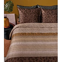 Beddinghouse Feis Terra Satijn-240 x 200 / 220 cm | Lits-Jumeaux. Dit dekbedovertrek heeft de naam Feis en komt uit de collectie Composed van het merk Beddinghouse. Dit dekbedeovertrek heeft een speelse uitstraling en bevat een banendesign met verschillende structuren en dierenprints. Het dekbedovertrek is gemaakt van luxe katoen-satijn met een TC van 220. Dit materiaal blijft lang mooi en goed en is van nature ademend en vochtregulerend. Het dekbedovertrek voelt zacht en glad aan en heeft een chique glans. Het overtrek is 260 cm lang waardoor deze gemakkelijk onder het matras gestopt kan worden om koude voeten te voorkomen en geschikt is voor alle lengtematen