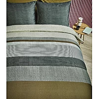 Beddinghouse Kyle Green Satijn-140 x 200 / 220 cm | 1-Persoons. Dit dekbedovertrek heeft de naam Kyle en is van het kwaliteitsmerk Beddinghouse. Dit dekbedovertrek bevat een banendesign met weefstructuren van grafische motieven. Het design is sfeervol en modern. Dit dekbedovertrek is gemaakt van 100% katoensatijn wat een chique glans heeft. Dit materiaal is van nature ademend en vochtregulerend en voelt ook zacht en glad aan. Hij blijft lang mooi en goed. Dit dekbedovertrek is geschikt voor alle lengtematen
