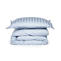 Damai Linea Air Blue Satijn-200 x 200 / 220 cm | 2-Persoons. Dit dekbedovertrek genaamd Linea Air Blue van het merk Damai is helemaal blauw met twee verschillende soorten blauw in banen. Het blauw houdt het dekbedovertrek rustig, daartegen maken de banen en de twee kleuren blauw het speels. Het dekbedovertrek is gemaakt van 100% katoen-satijn. Satijn een een zachte stof die fijn aanvoelt op uw lichaam en niet zo ruw als katoen. Satijn heeft nog steeds de katoen eigenschappen, zo ventileer satijn goed en absorbeert het ook veel vocht wat u tijdens uw nachtrust verliest. Met een kwaliteit van 120 gram per vierkante meter en een naaddichtheid van 200TC, heeft het overtrek een hoge kwaliteit en gaat het lang mee. Dit alles bij elkaar zorgt ervoor dat u een aangename en zorgeloze nachtrust kan hebben. Het dekbedovertrek wordt, afhankelijk van het formaat, met één of twee kussenslopen geleverd.