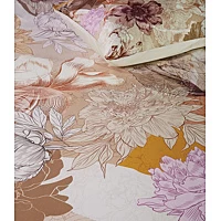 bloemen uit gravures van het Rijksmuseum. Het overtrek is gemaakt van 100% hoogwaardig katoensatijn, met een prachtige glans en wat zorgt dat het overtrek heerlijk zacht en glad aanvoelt. Sommige bloemen zijn als silhouetten onder de tekeningen geplaatst waardoor er diepte en gelaagdheid in het dessin ontstaat. Dat wat zo kenmerkend is voor een echt Kardol-dekbedovertrek. Het overtrek is daarbij een unieke digitale print, ieder stuk van het overtrek laat wat anders zien. De bloemen hebben mooie zachte kleuren, zoals diep goud, cognac en bruintonen, afgewisseld met roze en lila. De achterzijde van zowel het overtrek als de kussenslopen heeft een effen champagne kleur. Het dekbedovertrek is gemaakt van 100% katoensatijn, 220 TC. Dit houdt in dat er fijne luxe garen zijn gebruikt. Hierdoor heeft het overtrek een chique glans en voelt zacht en glad aan. Het overtrek heeft een dubbele instopstrook en een totale lengte van 260 cm. Het overtrek is geschikt voor