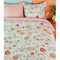 bloemen en bladeren die in elkaar overlopen. De print is afgebeeld op een off-white ondergrond. Op subtiele wijze is de Oilily branding verwerkt in de sierlijke takjes. De achterkant van het dekbedovertrek en de kussenslopen hebben een effen licht roze kleur. De kussenslopen zijn afgewerkt met knalroze cordpiping. Het dekbedovertrek past perfect in een moderne en trendy slaapkamer. Oilily bedtextiel wordt ontworpen en geproduceerd door Bedding House. Bedding House participeert in het programma van Better Cotton Initiative (BCI), met als doel de katoenteelt wereldwijd te verbeteren. Het dekbedovertrek is gemaakt van 100% katoensatijn. Katoensatijn is gemaakt van 100% katoen van hoge kwaliteit, heeft een delicate glans en voelt zacht aan door de satijnweving. Het dekbedovertrek heeft over de gehele breedte aan beide zijden een dubbele instopstrook. De totale lengte van een Oilily katoensatijnen dekbedovertrek is 260 cm. Dit is extra lang waardoor het dekbedovertrek gemakkelijk onder het matras gestopt kan worden en koude voeten worden voorkomen. Het overtrek is geschikt voor