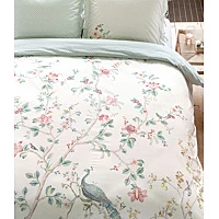 Pip Studio Okinawa Wit Percal-140 x 200 / 220 cm | 1-Persoons. Dit dekbedovertrek met Okinawa dessin is van het merk Pip Studio. Het is gemaakt van 100% BCI Percal katoen en heeft de kwaliteit 200 TC. U kunt dit overtrek herkennen aan de Oosterse Chinoiserie-prints met een landschap van Japanse bloesem en sierlijke pauwen. Zowel de