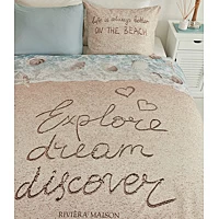 Dekbedovertrek – NaturelAre you ready for the summer? Met het dekbedovertrek Explore van Rivièra Maison op je bed moet dat zeker goedkomen. Met de print van schelpen, zand en zeewater creëer je binnen een handomdraai het ultieme strandgevoel in je slaapkamer. Voor het overtrek zijn heerlijke zomerse kleuren gebruikt zoals zand, ecru, taupe, aquablauw en lichtblauw. Op het overtrek staat de tekst “Explore dream discover”. Op de kussenslopen staat de tekst “ Life is always better at the beach”. Zowel de achterzijde van het overtrek als de achterzijde van de kussenslopen hebben een effen lichtblauwe kleur. Het dekbedovertrek is verpakt in een luxe doos; een mooi cadeau voor jezelf of iemand anders. De doos, heeft een magneetsluiting aan de zijkant en kun je hergebruiken of makkelijk recyclen door de onderdelen te scheiden. In de verpakking zit ook een heerlijk geurend lavendelzakje. Het dekbedovertrek is gemaakt van 100% katoen, 144 TC. Het overtrek heeft een dubbele instopstrook en een totale lengte van 260 cm. Het overtrek is geschikt voor