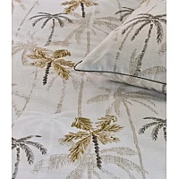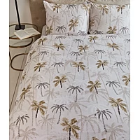 Dekbedovertrek – ZandWaan je op een tropisch eiland, met het dekbedovertrek Palm Parade van Rivièra Maison. Over het gehele overtrek, zowel aan de voor- als achterzijde, staan allemaal verschillende palmbomen afgebeeld tegen een ondergrond van een mooie geprinte structuur. De palmbomen op de voorgrond zijn vol van kleur en de naar achterliggende palmen verdwijnen meer in de structuur, wat zorgt voor diepte. De kussenslopen zijn rondom afgewerkt met een prachtige piping. Style het overtrek af met een van de bijpassende