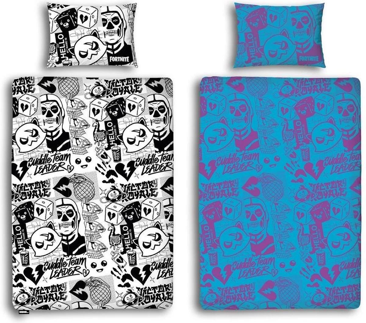 Fortnite dekbedovertrek 1 persoons Fanzine – dekbedovertrek kinderen 140×200 – 100% katoen – Wit / Zwart – Tweezijdig