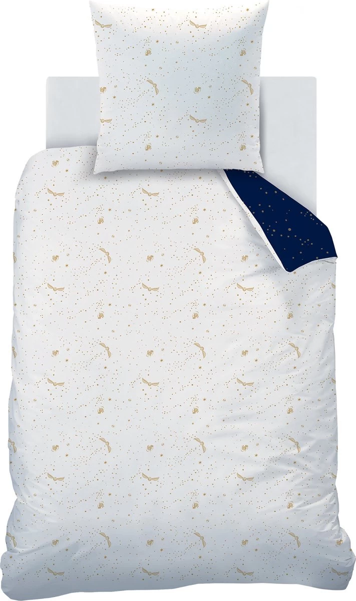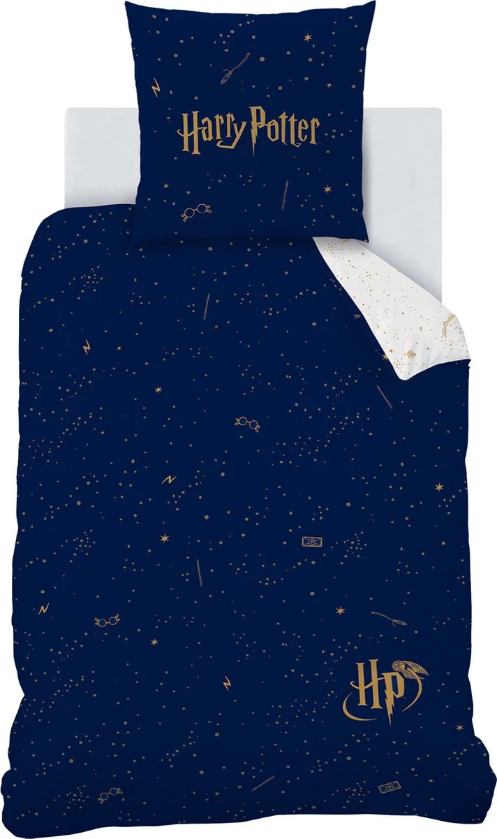 Harry Potter dekbedovertrek Iconic. Dit fantastische eenpersoons katoenen dekbedovertrek is een aanwinst voor elke slaapkamer. Dit artikel beschikt over een diepblauwe voorkant met een motief van sterren, zwerkbal, toverstaffen en andere tovenaarsaccessoires. Dit artikel is bij uitstek geschikt om te combineren met een Harry Potter hoeslaken.