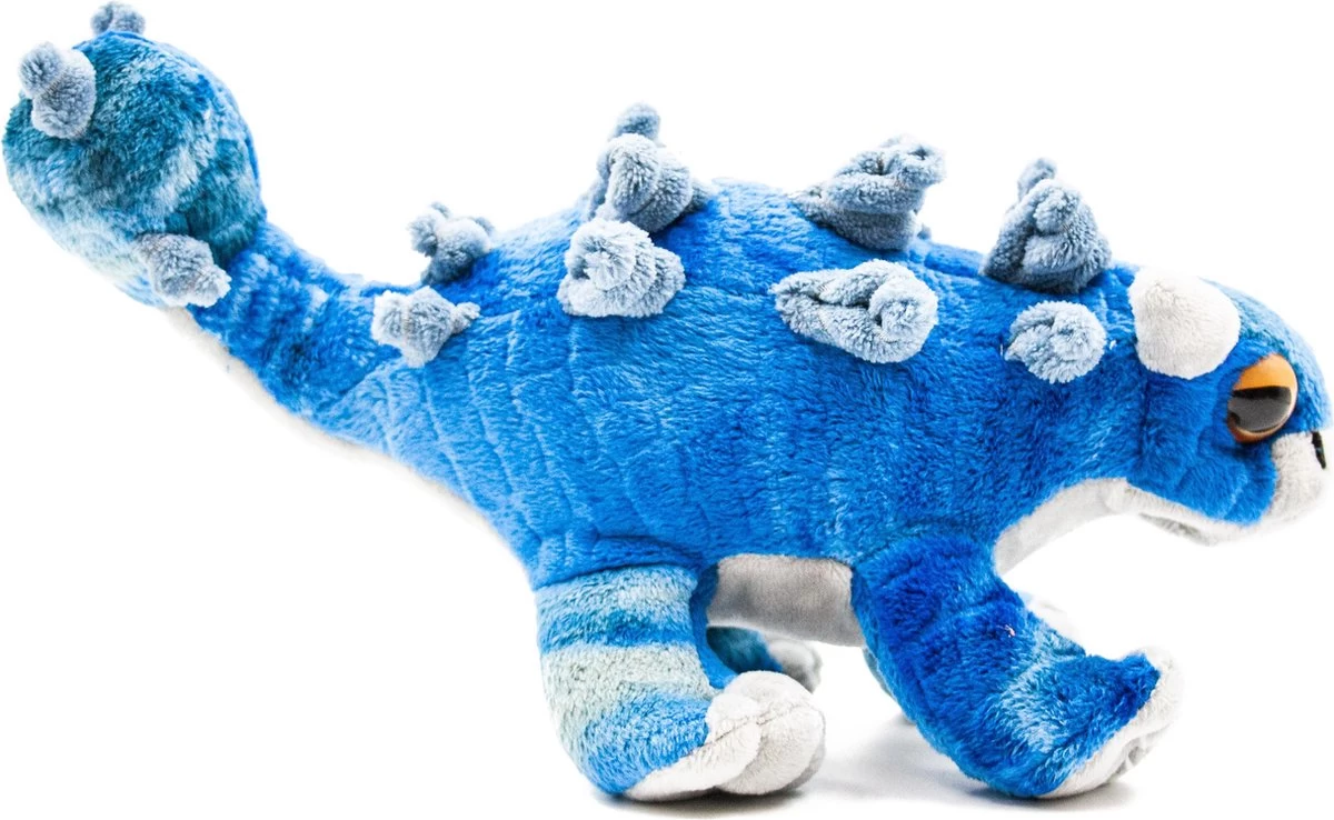 Deze dino is een Ankylosaurus , heeft grote puntige stekels op z’n rug en aan het uiteinde van de staart is een verdikking , hiermee sloeg deze dino vroeger al z’n tegenstanders KO !