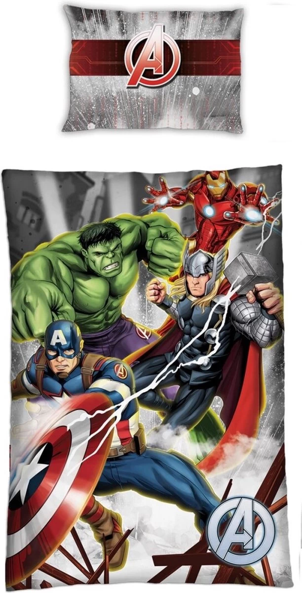 Marvel Avengers Dekbedovertrek, Lightning. Een gaaf polyester dekbedovertrek van de superhelden film The Avengers. Met The Hulk, Iron Man, Thor en Captain America slaap je gegarandeerd goed en veilig! Een geweldig cadeau voor elke fan van The Avengers!