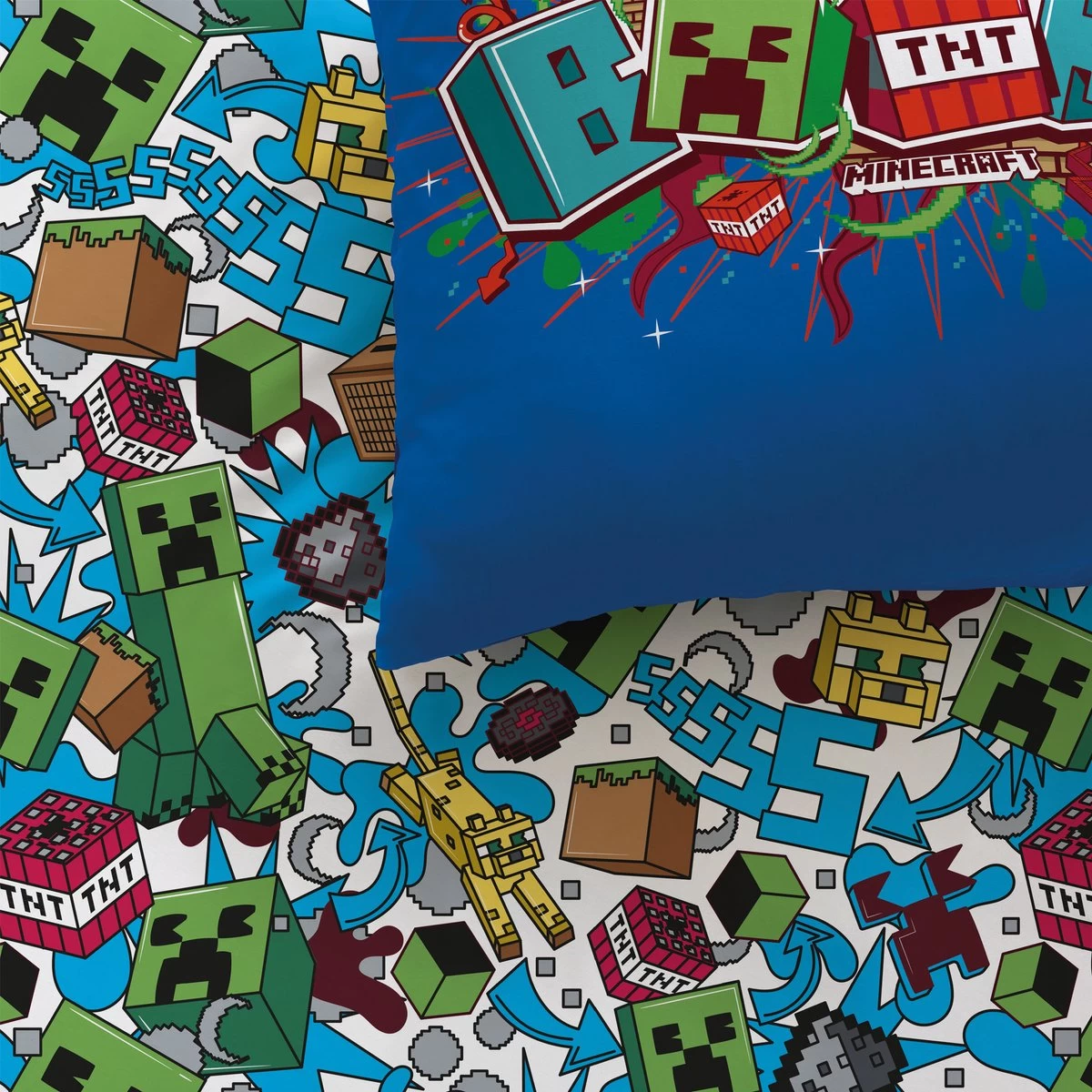 Minecraft Dekbedovertrek, Slurp . Droom jij ook over Mobs, Creepers en TNT? Dan weet jij dit dekbedovertrek meteen te herkennen! Een supergave set van het spel Minecraft. Dit kleurrijke dekbed is een echte blikvanger voor elke slaapkamer door de diverse Minecraft afbeeldingen. Kan jij ze allemaal benoemen? Het katoenen dekbed is dubbelzijdig bedrukt, wat ook leuke mogelijkheden geeft bij het opmaken van het bed. Een geweldig cadeau-idee voor alle liefhebbers van het Minecraft spel!