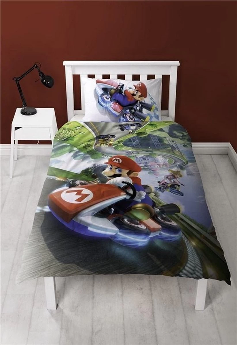 Kun jij nou geen genoeg krijgen van Mariokart? Dan is dit dekbedovertrek zeker iets voor jou! Race tot diep in de nacht door de verschillende werelden samen met Mario en zijn vrienden en haal als eerste de finish. Op de voorkant van het overtrek is Mario in zijn raceauto te zien tijdens een spannende race en op de achterkant staat een patroontje van Mario en Luigi die samen aan het racen zijn. Het overtrek is gemaakt van 100% katoen en heeft een formaat van 140 x 200 cm.