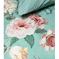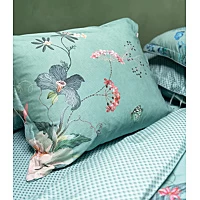 Pip Studio Tokyo Bouquet Groen Percal-240 x 200 / 220 cm | Lits-Jumeaux. Dit dekbedovertrek met Tokyo Bouquet dessin is van het merk Pip Studio. Het is gemaakt van 100% BCI Percal Katoen en heeft de kwaliteit 200 TC. U kunt dit overtrek herkennen aan het stijlvolle uiterlijk met een subtiel patroon en verassende figuratieve elementen, zoals oude sleutels en muzieknoten. De banen aan de zijkant van het overtrek zijn voorzien van een kleinere bloemenprint in dezelfde kleurtonen en de achterkant heeft een patroon van gestileerde boogjes. Het heerlijk zacht aanvoelende overtrek heeft daarnaast een dubbele instopstrook over de gehele breedte, is wasbaar to 60 graden en kan in de droger.