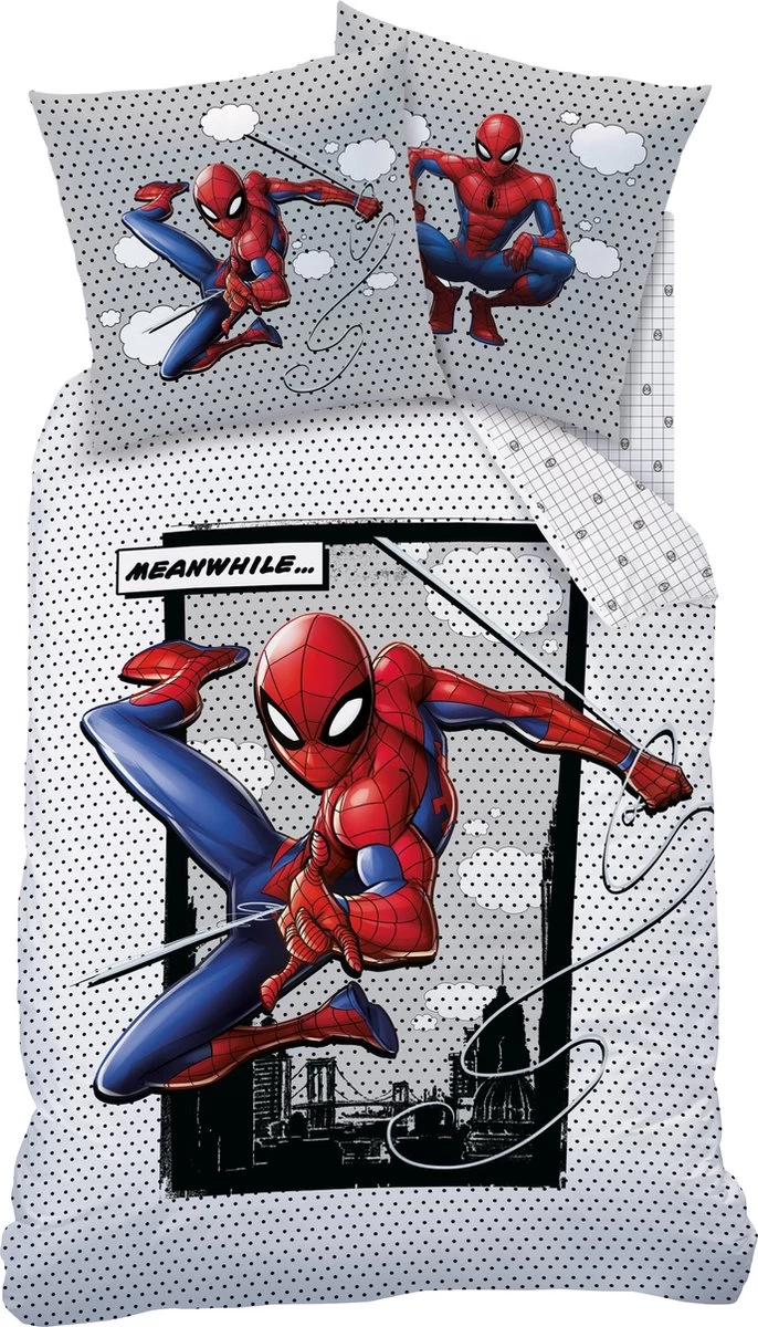 SpiderMan Dekbedovertrek, Hero. De held van Gotham City; Spiderman! Deze superheld bestrijdt het kwaad met zijn spinnenkrachten. Geen vijand is hem te gek! Dit stoere eenpersoons dekbedovertrek is dan ook geschikt voor iedereen zonder angst. Een echte aanwinst voor elke stoere slaapkamer. Zowel het kussen als de overtrek zijn dubbelzijdig bedrukt, wat leuke mogelijkheden geeft met opmaken. Tevens is er een bijpassend hoeslaken, apart, verkrijgbaar. Een geweldig cadeau voor de echte Spider-man fan en een leuk idee voor een verjaardag of de feestdagen.