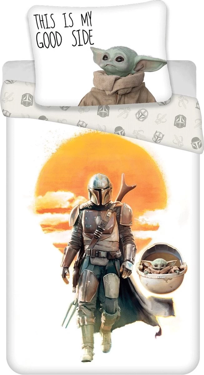 Star Wars Dekbedovertrek, Mandalorian. Gaaf, katoenen dekbedovertrek van de serie The Mandalorian. Deze spin-off van de Star Wars film werd mede bekend door Baby Yoda, ook wel bekend als The Child. Dit dekbedovertrek is voorzien van een leuke afbeelding van The Child samen met Boba Fett, de andere bekende personage uit deze serie. Het dekbedovertrek is dubbelzijdig bedrukt, wat leuke opties geeft met het opmaken van het bed en zorgt voor een echte blikvanger in de slaapkamer. Een waanzinnig cadeau voor een Star Wars fan en leuk om te geven voor een verjaardag of de feestdagen.