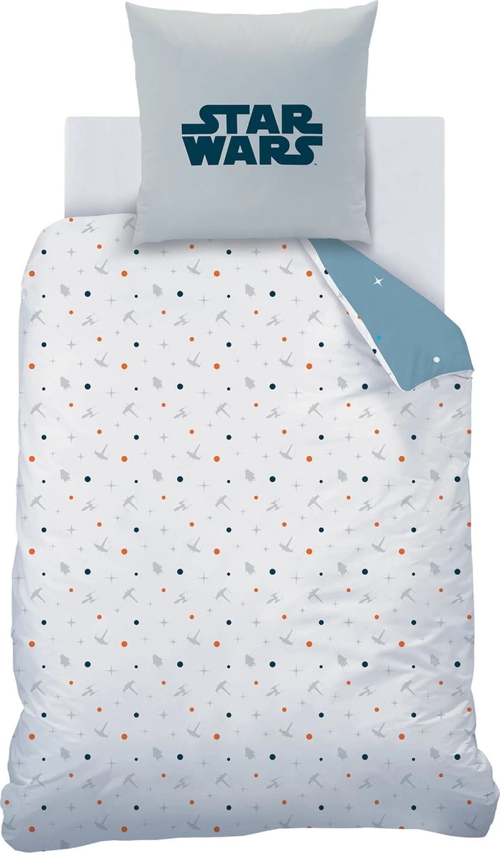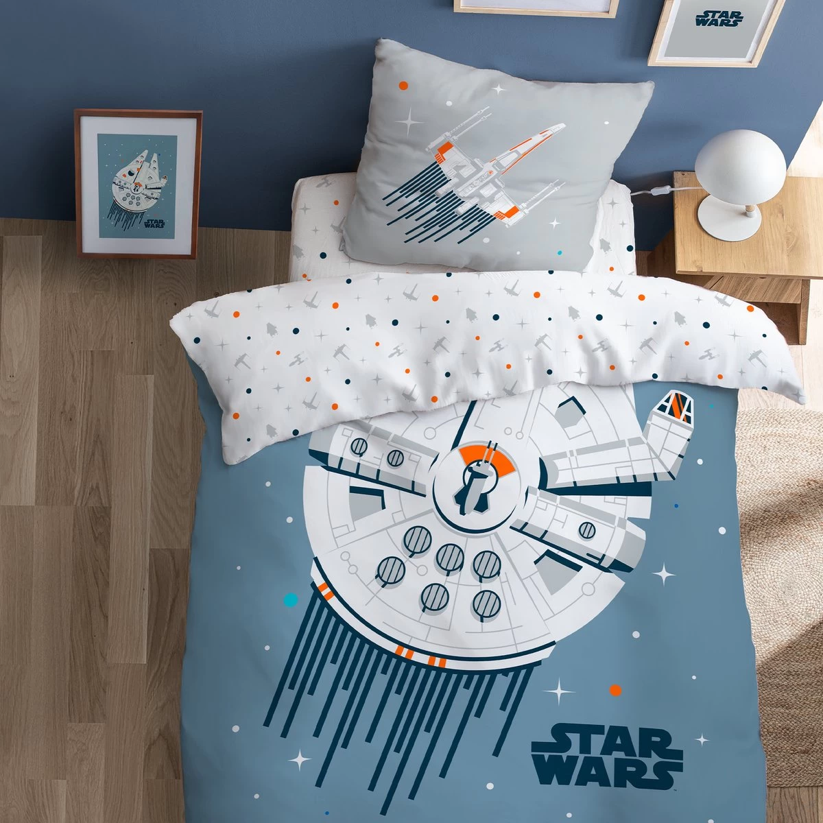 Star Wars Dekbedovertrek, Millenium Falcon. Stoer dekbedovertrek van de filmreeks Star Wars. Verschillende afbeeldingen hiervan kan je op dit katoenen dekbedovertrek terugvinden. Door de dubbelzijdige bedrukking van de overtrek, kan er afgewisseld worden met het opmaken van het bed. Een geweldig cadeau-idee voor de liefhebber van de filmserie voor een verjaardag of de feestdagen.