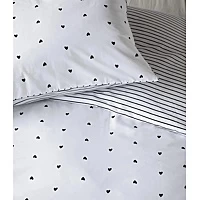 Dekbedovertrek VT Wonen Striped Hearts Zwart Wit Percal-200 x 200 / 220 cm | 2-Persoons. Het dekbedovertrek Striped Heart is gemaakt van heerlijk soepel en zacht Percal. Beide kanten van het dekbedovertrek zijn te gebruiken. De voorkant heeft een witte achtergrond met hartjesprint en de achterzijde heeft een fijn zwart-wit streepjes dessin. Het dekbedovertrek is gemaakt van 100% percale katoen van hoge kwaliteit en kan gewassen worden tot 60 graden. Door de hogen kwaliteit blijft de kleur en vorm lange tijd mooi.